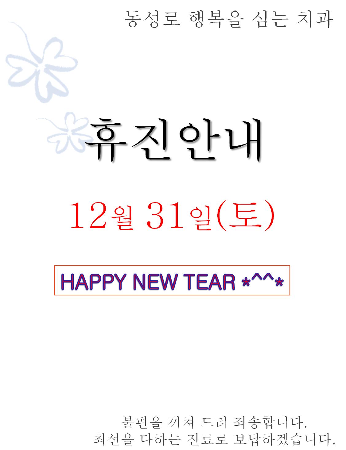 »ç°í¾øÀÌ ÇÑÇØ ¸¶¹«¸® Àß ÇÏ½Ã±æ µ¿¼º·Î ÇູÀ» ½É´Â Ä¡°ú°¡ ±â¿øÇÕ´Ï´Ù^^ HAPPY NEW YEAR ¢½